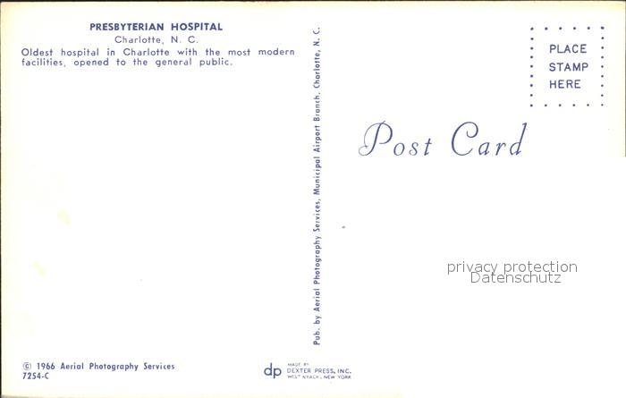 72045269 Charlotte North Carolina Presbyterian Hospital Air view postalisch nicht gelaufen Erhaltung siehe scans KatCode: 14140350000000