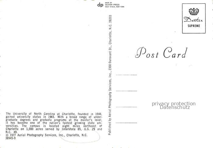 74090970 Charlotte North Carolina USA University of North Carolina postalisch nicht gelaufen Fliegeraufnahme Erhaltung siehe scans [WerneD78] KatCode: 14140350000000