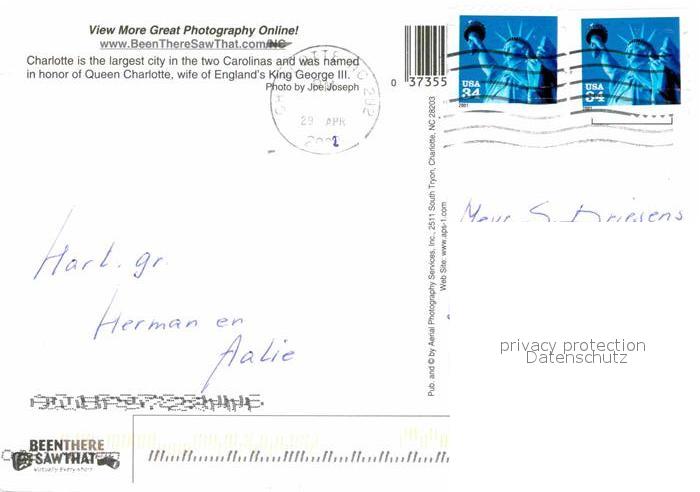 72636753 old postcard Charlotte North Carolina postalisch gelaufen Erhaltung siehe scans [NatalD47] KatCode: 14140350000000