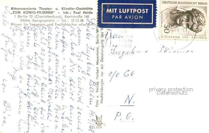 73830266 alte Postkarte Charlottenburg Altrenommierte Theater und Kuenstler Gaststaette Zum Koenig-Pilsener Gastraeume postalisch gelaufen Erhaltung siehe scans [FriedD77] KatCode: 11110011000000