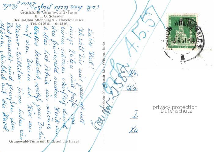 72816657 alte Postkarte Charlottenburg Grunewald Turm postalisch gelaufen Erhaltung siehe scans [AndreD76] KatCode: 11110011000000