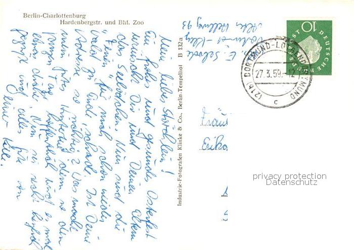 73137919 alte Postkarte Charlottenburg Hardenbergstrasse Bahnhof Zoo postalisch gelaufen Erhaltung siehe scans [NatalD47] KatCode: 11110011000000
