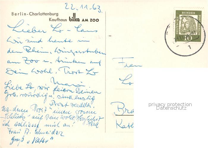 73059183 alte Postkarte Charlottenburg Kaufhaus Bilka am Zoo postalisch gelaufen Erhaltung siehe scans [WerneD78] KatCode: 11110011000000