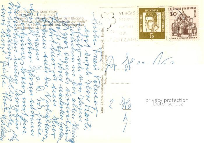 73024488 alte Postkarte Charlottenburg Maria Regina Martyrum Feierhof mit Oberkirche postalisch gelaufen Erhaltung siehe scans [WerneD78] KatCode: 11110011000000