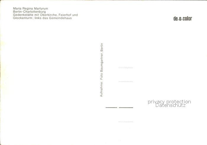 72470738 Charlottenburg Marina Regina Martyrum Gedenkstaette Oberkirche Feierhof Glockenturm Gemeindehaus postalisch nicht gelaufen Erhaltung siehe scans KatCode: 11110011000000