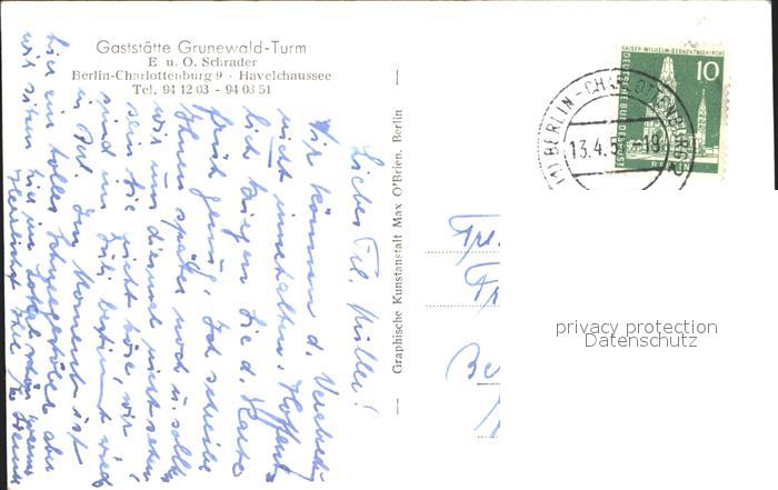 71990996 alte Postkarte Charlottenburg Restaurant Grunewald-Turm Havelchaussee postalisch gelaufen Erhaltung siehe scans KatCode: 11110011000000