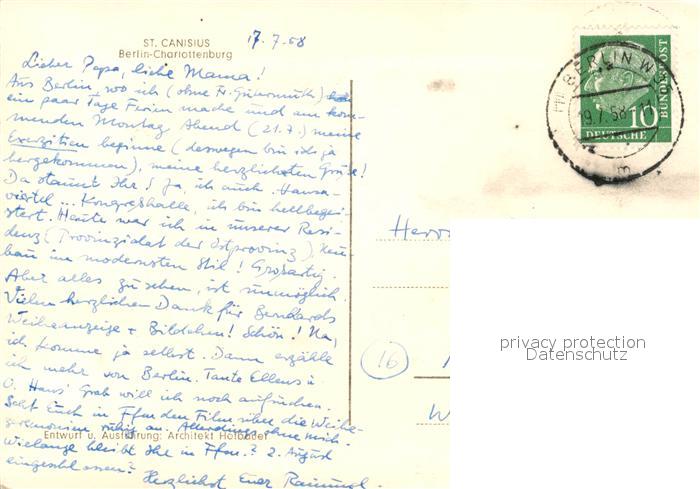 73239140 alte Postkarte Charlottenburg St. Canisius Kirche postalisch gelaufen Erhaltung siehe scans [NatalD47] KatCode: 11110011000000