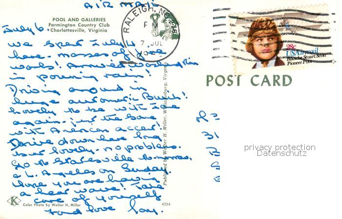 73131830 old postcard Charlottesville Virginia Pool and Galleries Farmington Country Club postalisch gelaufen Erhaltung siehe scans [FriedD77] KatCode: 14140490000000
