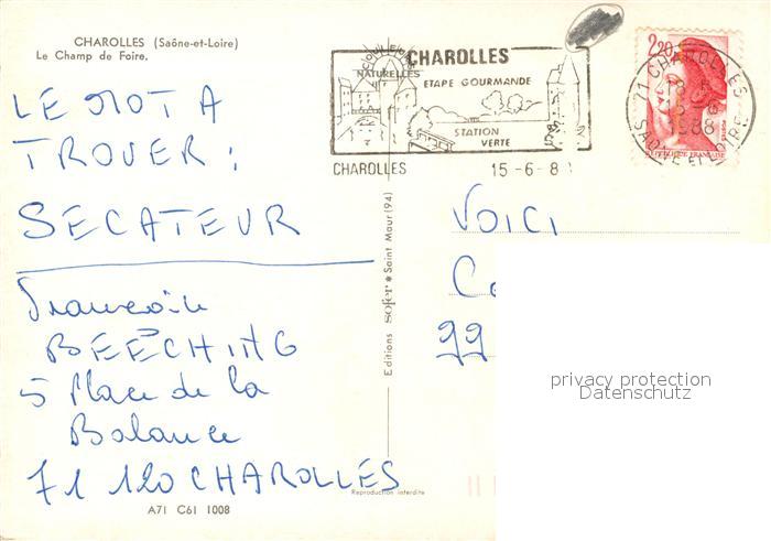 13146485 carte postale Charolles Fliegeraufnahme le Champ de Foire postalisch gelaufen Erhaltung siehe scans [LiesaD40] KatCode: 11170071371106