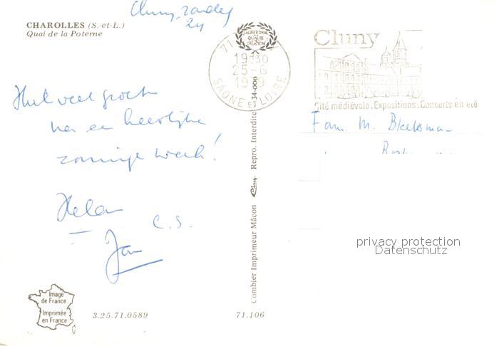 12935353 carte postale Charolles Quai de la Poterne postalisch gelaufen Erhaltung siehe scans [WerneD78] KatCode: 11170071371106