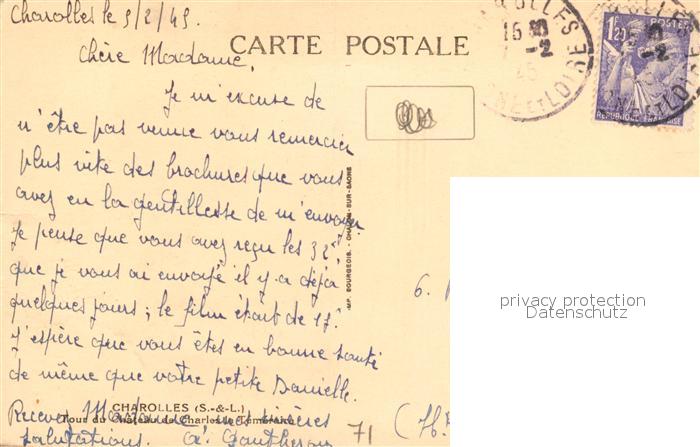 13483079 carte postale Charolles Tour du Chateau de Charles le Téméraire postalisch gelaufen Erhaltung siehe scans [FriedD77] KatCode: 11170071371106