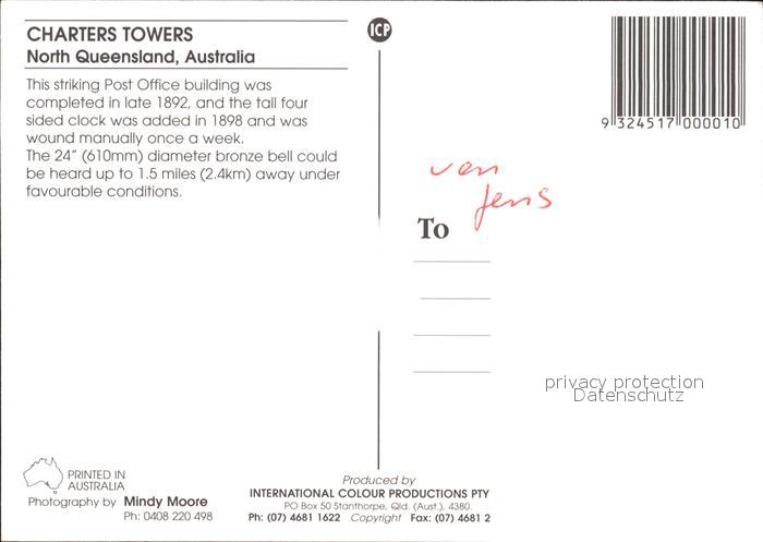 Charters Towers Post Office Building Cock Tower postalisch nicht gelaufen Erhaltung siehe scans