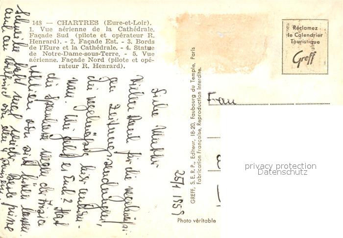 13230956 carte postale Chartres 28 Vue aérienne de la Cathedrale Bords de l’Eure Statue de Notre Dame sous Terre postalisch gelaufen Erhaltung siehe scans [FriedD77] KatCode: 11170028128085