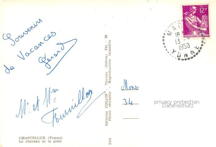 13513605 carte postale Chastellux-sur-Cure Le chateau et le pont postalisch gelaufen Erhaltung siehe scans [WerneD78] KatCode: 11170089289089