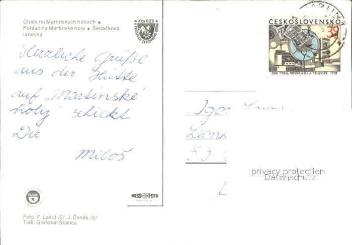 old postcard Chata na Martinskych Pohlad na Martinske hole Sedackova lanovka postalisch gelaufen Erhaltung siehe scans