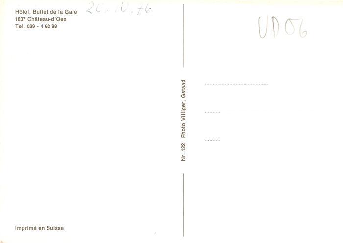 13925896 alte Postkarte Chateau-d Oex Hotel Buffet de la Gare postalisch gelaufen Erhaltung siehe scans [WerneD78] KatCode: 11470240835806