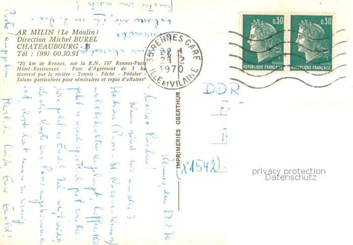 13768169 Chateaubourg d Ille-et-Vilaine Ar Milin Le Moulin Hôtel Restaurant Parc d Agrément postalisch gelaufen Erhaltung siehe scans [FriedD77] carte postale Frie Katcode 11170035335068