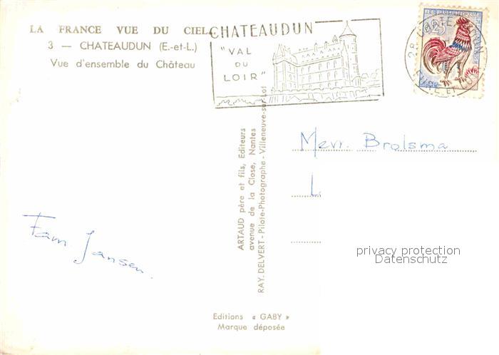 12657463 carte postale Chateaudun Fliegeraufnahme avec Chateau postalisch gelaufen Erhaltung siehe scans [LiesaD40] KatCode: 11170028228088