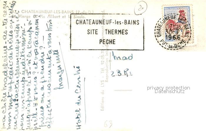 13523971 carte postale Chateauneuf-les-Bains La Vierge du Pic Alibert et la Sioule postalisch gelaufen Erhaltung siehe scans [FriedD77] KatCode: 11170063463100