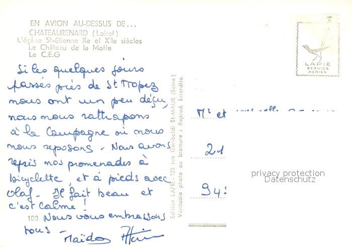 13593151 Chateaurenard Loiret Eglise Saint Etienne Chateau de la Motte le C.E.G. postalisch gelaufen Erhaltung siehe scans [FriedD77] carte postale Frie Katcode 11170045145083