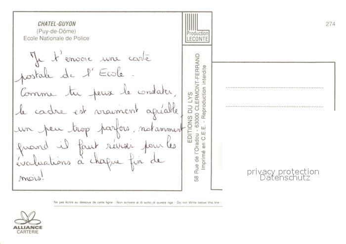 13336488 Chatel-Guyon Ecole Nationale de Police postalisch nicht gelaufen Erhaltung siehe scans [LiesaD40] KatCode: 11170063463103