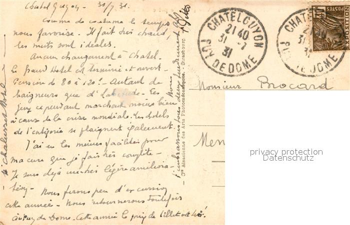 13535388 carte postale Chatel-Guyon Vue prise du Calvaire postalisch gelaufen Erhaltung siehe scans [LiesaD40] KatCode: 11170063463103
