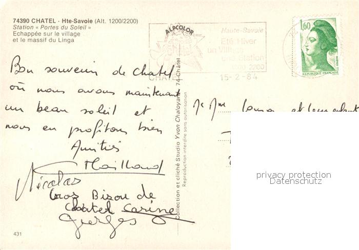 13536134 carte postale Chatel Haute-Savoie Echappée sur le village et Massif du Linga Alpes en hiver postalisch gelaufen Erhaltung siehe scans [FriedD77] KatCode: 11170074474063
