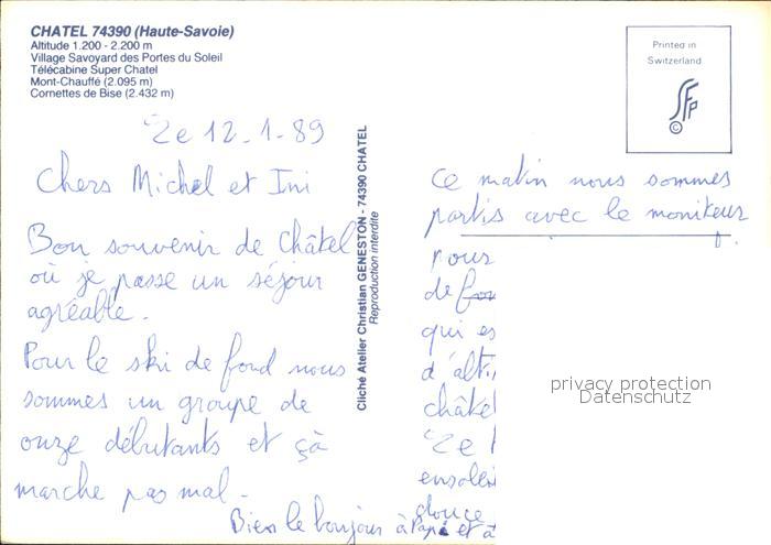 12514428 Chatel Haute-Savoie mit Seilbahn postalisch nicht gelaufen Erhaltung siehe scans KatCode: 11170074474063