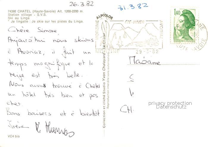 13324474 carte postale Chatel Haute-Savoie Station village Ski au Linga postalisch gelaufen Erhaltung siehe scans [WerneD78] KatCode: 11170074474063