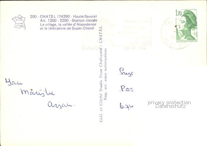 12920914 carte postale Chatel Haute-Savoie Village Vallee d Abondance Telecabine du Super Chatel postalisch gelaufen Erhaltung siehe scans [FriedD46] KatCode: 11170074474063