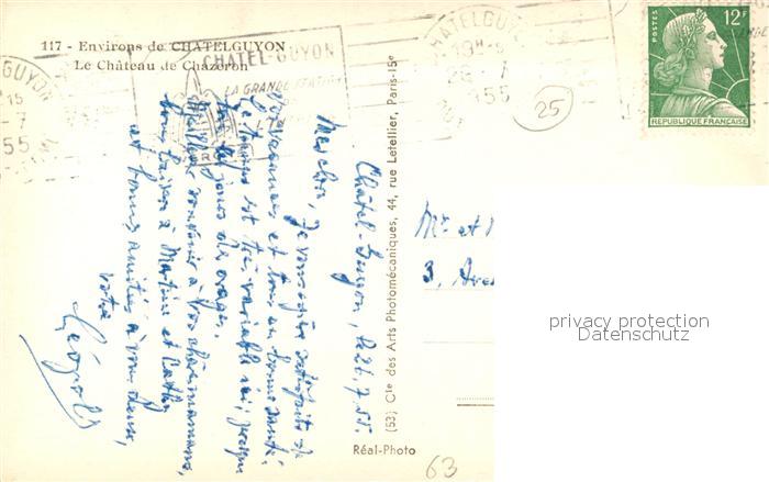 13523967 carte postale Chatelguyon Chateau de Chazeron postalisch gelaufen Erhaltung siehe scans [FriedD77] KatCode: 11170063463103
