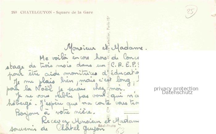 14105740 Chatelguyon Chatel-Guyon 63 Puy-de-Dome Square de la Gare postalisch nicht gelaufen Erhaltung siehe scans [FriedD77] Frie Katcode 11170063463103