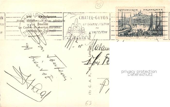 13524009 carte postale Chatelguyon Place Brosson La Bourrée Casino Avenue Baraduc Chateau de Tournoel postalisch gelaufen Erhaltung siehe scans [FriedD77] KatCode: 11170063463103