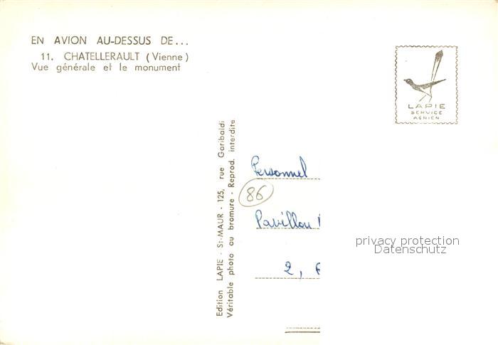 13218392 Chatellerault Monument vue aérienne postalisch nicht gelaufen Erhaltung siehe scans [FriedD77] KatCode: 11170086186066