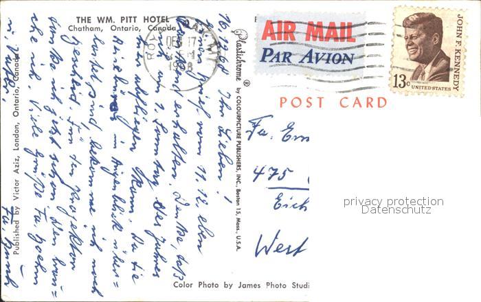 old postcard Chatham Ontario The WM Pitt Hotel postalisch gelaufen Erhaltung siehe scans