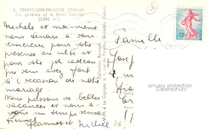 13499744 carte postale Chatillon-en-Diois Vue Generale et Mont Clandaz postalisch gelaufen Erhaltung siehe scans [FriedD77] KatCode: 11170026126086