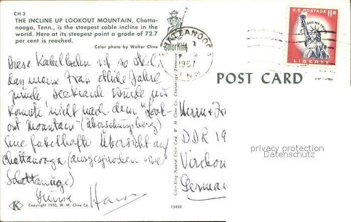 72120291 old postcard Chattanooga Tennessee The Incline up Lookout Mountain postalisch gelaufen Erhaltung siehe scans KatCode: 14140450000000