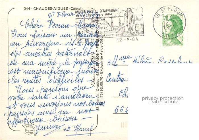 13213477 carte postale Chaudes-Aigues Les truites preferent la fraicheur du Remontalou Le proches alentour sont riches de sites prestigeux Garabit Mallet Alleuze Grandval La Truyere et ses gorges postalisch gelaufen Erhaltung siehe scans [WerneD78] KatCode: 11170015315045