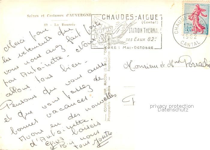 13580416 carte postale Chaudes-Aigues Scenes et Costumes d’Auvergne La Bourree postalisch gelaufen Erhaltung siehe scans [WerneD78] KatCode: 11170015315045