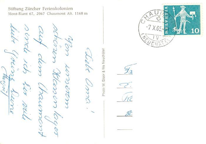 13920059 alte Postkarte Chaumont 1168m NE Stiftung Zuercher Ferienkolonien postalisch gelaufen Erhaltung siehe scans [WerneD78] KatCode: 11470130420156
