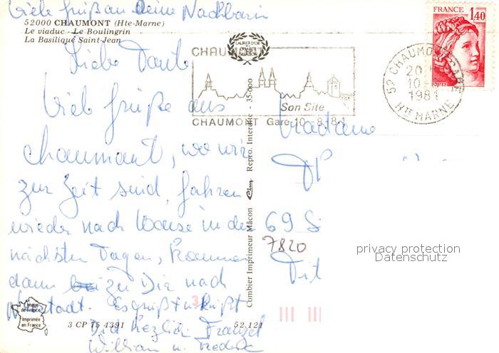 13264731 carte postale Chaumont 52 Fliegeraufnahme Viaduct Boulingrin Basilika Saint Jean postalisch gelaufen Erhaltung siehe scans [KathaD81] KatCode: 11170052152121