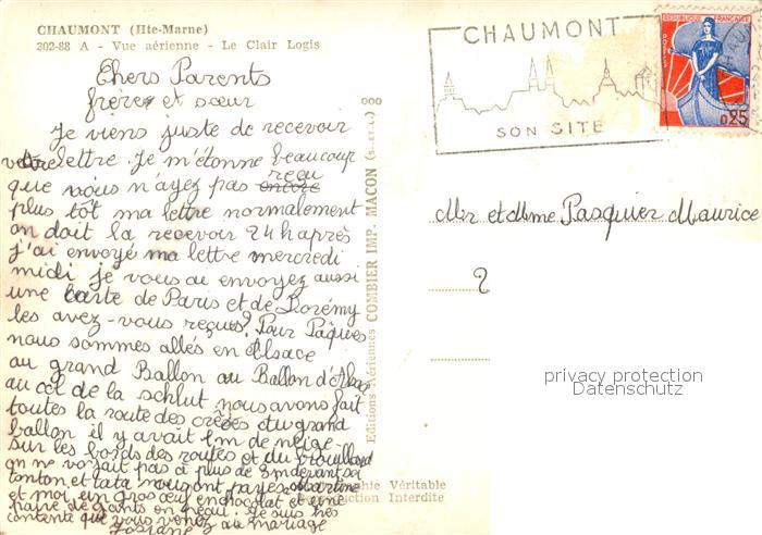 13583897 Chaumont 52 Hôtel Le Clair Logis vue aérienne postalisch gelaufen Erhaltung siehe scans [FriedD77] carte postale Frie Katcode 11170052152121