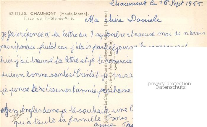13577274 Chaumont 52 Place de l’Hotel de Ville postalisch nicht gelaufen Erhaltung siehe scans [WerneD78] KatCode: 11170052152121