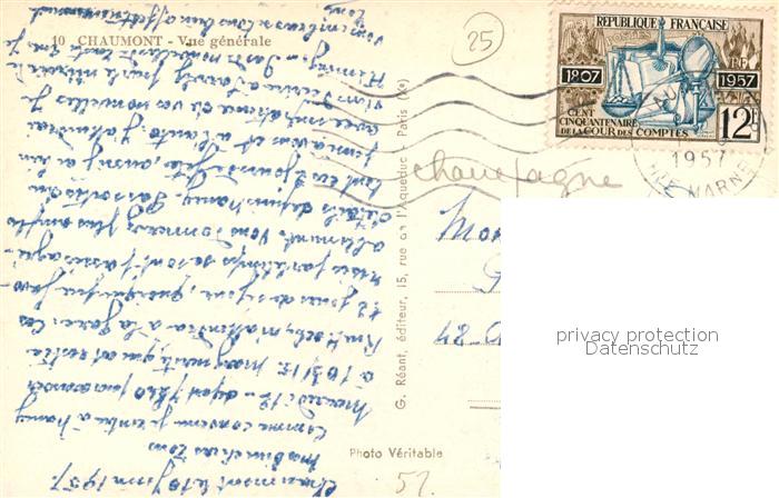 13506329 carte postale Chaumont 52 Vue Generale postalisch gelaufen Erhaltung siehe scans [FriedD77] KatCode: 11170052152121
