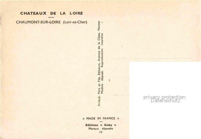12662136 Chaumont-sur-Loire Chàteau de la Loire postalisch nicht gelaufen Erhaltung siehe scans [AndreD76] KatCode: 11170041141045