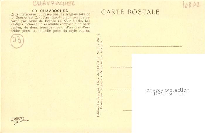13545091 Chavroches Chauteau postalisch nicht gelaufen Erhaltung siehe scans [KathaD81] KatCode: 11170003303071