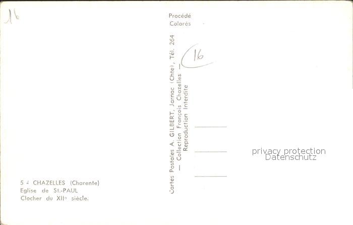 11991022 Chazelles Charente Eglise de St. Paul postalisch nicht gelaufen Erhaltung siehe scans KatCode: 11170016116093