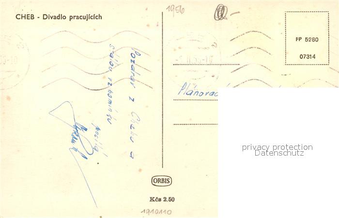 old postcard Cheb Eger Divadlo pracujicich Theater postalisch gelaufen Erhaltung siehe scans [FriedD77]
