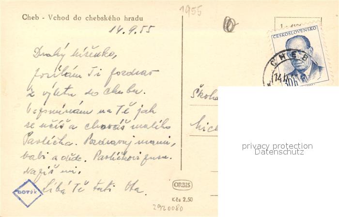 old postcard Cheb Eger Vehod do chebskeho hradu Burgruine postalisch gelaufen Erhaltung siehe scans [FriedD77]
