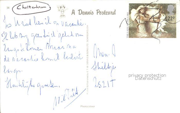 old postcard Cheltenham Pump room Pittville Park postalisch gelaufen Erhaltung siehe scans